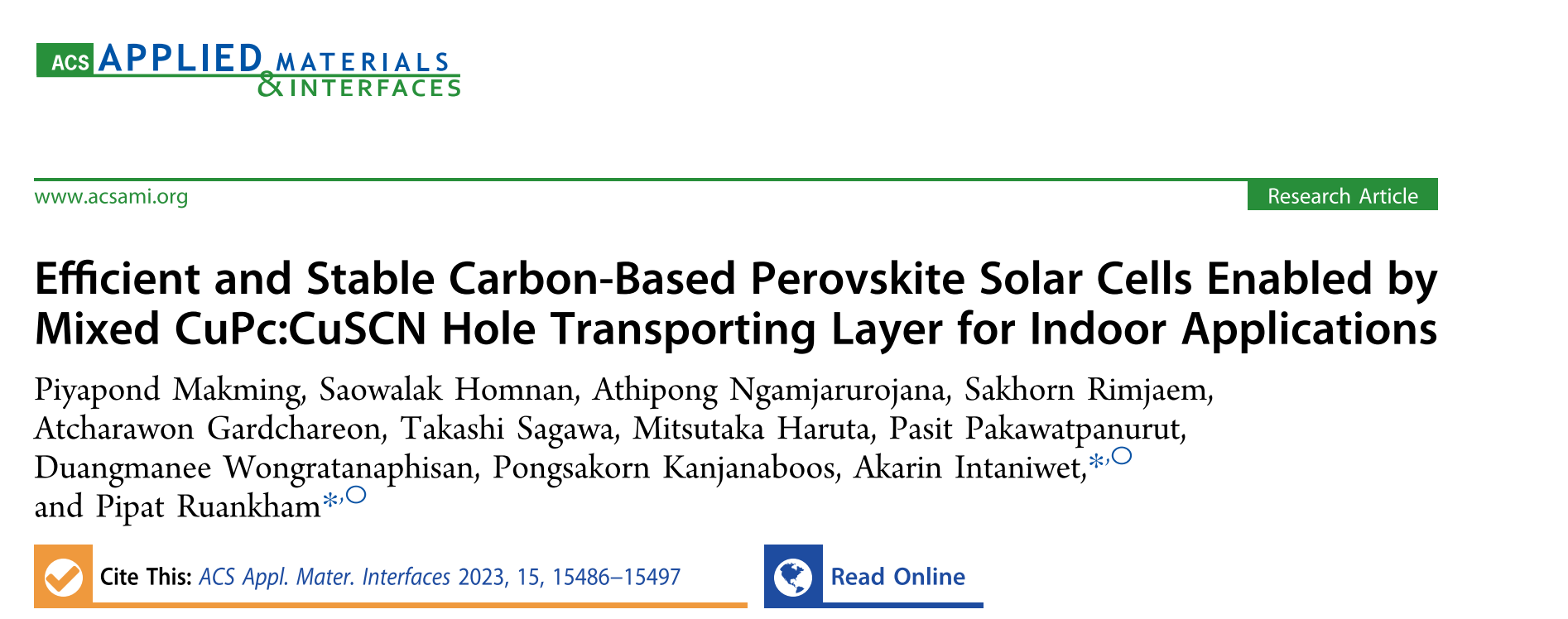 2.Efficient and Stable Carbon-Based Perovskite Solar Cells Enabled by Mixed CuPc:CuSCN Hole Transporting Layer for Indoor Applications: pubs.acs.org/doi/10.1021/acsami.2c23136